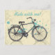 Retro black and white drawing of a Vintage Bicycle with blue colour splashes on textured background. Perfect for anyone who loves old-style designs!