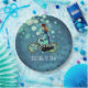 Vintage bicycle girl - she is wearing a red cap and blue dress . Antique graphic image with great details . It comes with blue bokeh lights as background and the words "Riding to Tea " in white fonts .The antique image was edited and applied on this paper plate by Alma Wad .