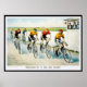 This is a quality reproduction of the vintage reproduction Currier & Ives "Wheelmen in 'A Red Hot Finish'" showing a bicycle race.