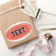 Vintage big oval logo stickers with custom text. Customisable colours. Personalised envelope seals and sealers. Also handy labelling Birthday gifts, Christmas presents, wedding favours and more. Coloured emblem design with bold text. Navy blue and coral pink.