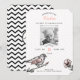 Introduce the birth of your beautiful baby girl to your family and friends with this chic vintage style baby girl birth announcement card. The design features our own hand drawn black ink vintage style bird and floral artwork with subtle pink watercolor wash to create a simple, trendy and vintage style design. Modern combination of vintage style typography and script font creates a beautiful chic look. A simple subtle pink polka dot pattern further enhances the chic trendy look. Baby photo placeholder image with sleek simple inner white border frame adds a modern touch. The reverse side features a bold and trendy black chevron pattern with natural bird illustration, that beautifully complements the front artwork to create a perfect balance of vintage elegance and modern style. All illustrations contained in this vintage bird and florals baby girl birth announcement card are hand-drawn original artwork by Moodthology. You can customise the text size, text colour, font and layout for your own personal design preference.