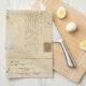 A sweet vintage nest with eggs and little blue and yellow flowers is set on the back of a lovely vintage French postcard and collage of postcards with handwritten addresses, old stamps and postmarks to make this charming kitchen towel. Matching items are available in my Zazzle store.