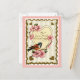 A colourful, little bird with lovely pink flowers and gold hearts. Text: St. Valentine's Greetings in a cream-coloured heart. Image of a Vintage Valentine Greeting Card on a custom pink background.
