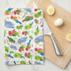 Vintage Birds Pattern, Colourful parakeet pattern Tea Towel