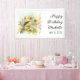 Custom birthday party banner with a painting of a yellow and black Goldfinch sitting in the branches of a tree. Personalised with the name of the guest of honour. Contact me for assistance with your customisations or to request additional matching or coordinating Zazzle products for your celebration.