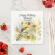Vintage Birds Yellow Goldfinch Happy Birthday Name Napkin