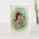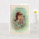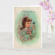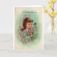 Vintage / Retro Birhday card. Adorable little girl with a blue bird and a bunch of pink roses in her hands. A Birthday Blessing!