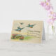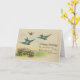 Lovely vintage birthday card showing three Bluebirds flying over a country scene. A delightful birthday card for anyone.