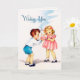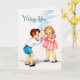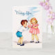 Vintage birthday card with a little boy and girl holding a birthday cake with candles.