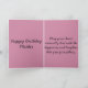 I was concerned that the card would not arrive on time but Zazzle came up trumps and the card arrived on the day before her birthday - perfect! I didn't see the card as it went straight to our family in New Zealand. However they did send a photo and it looked excellent!