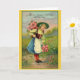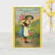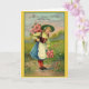 Retro / Vintage Birthday greeting card. Lovely young country girl with a basket and bouquet of roses! Many Happy Returns Of The Day!