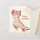 Feminine vintage fashion birthday postcard, with vintage floral patterned shoe and pink roses. Digital collage made using vintage images.