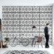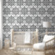 Geometric artistic linear pattern wallpaper in black and white.