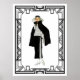 Enjoy this Art Deco inspired poster series of black and white fashions from the 1920s flapper era through the 1950s. This vintage fashion poster features a 1920s inspired flapper ensemble with matching black fur cape and hat. Flappers are known for their distinctive style of dresses with shorter, calf-revealing lengths and lower necklines, though not typically form fitting: Straight and slim was the preferred silhouette. Flappers wore high heel shoes and threw away their corsets in favour of bras and lingerie.