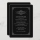 These unique literary wedding invitations for book lovers feature a vintage book cover design with white decorative scrolls and an ornate frame. Personalise the elegant custom text on the front and back of the invitation to include "A Celebration of Love" or other preferred title and wedding invitation wording. The black background colour can be modified to coordinate with your wedding colour scheme.