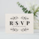Vintage Black & Cream Botanical Elegant Wedding RSVP Card