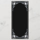 The menu has a vintage faux silver frame. The title "Menu" and the subtitles are written in caps. All text can be personalised and has a grey colour similar to the frame. The background is black. On the back, there is the same vintage frame.
