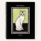 Vintage Black Green White Sitting Cat Illustration Art Notebook.