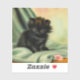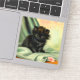 Sticker featuring a loveable black kitten! The green eyed kitten sits on a blanket with a pink flower. A beautiful gift for cat lovers and Victorian art enthusiasts!