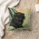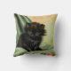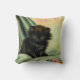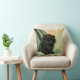 Pillow featuring a loveable black kitten! The green eyed kitten sits on a blanket with a pink flower. A beautiful gift for cat lovers and Victorian art enthusiasts!