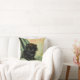 Vintage Black Kitten Illustration Cushion