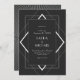 These stunning 5" x 7" minimalist vintage wedding invitations feature a simple vintage art deco style in black and white with placeholders on the front for the introduction wedding date and time, couple's full names, venue and venue address. The back has a starburst pattern with placeholders for the wedding couple initials in black and white.