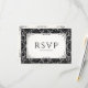 These 5" x 3.5" wedding RSVP response cards feature a vintage gothic style with black and white faux lace. The back has placeholders with lines for the guest to fill their name and to select their choice for attending.