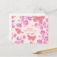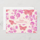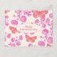 This postcard features a charming and romantic design, perfect for Valentine's Day. The background is a warm, pastel pink adorned with a repeating pattern of deep pink and purple flowers and butterflies. The flowers, resembling full blooms of roses and peonies, vary in size and are intricately detailed, conveying a sense of classic floral beauty. Interspersed among the flowers are delicate butterflies with wings spread, showcasing patterns that echo the floral theme.