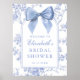 This pretty bridal shower welcome sign features an elegant blue bow and stylish typography with a floral background and can be personalized with your name and special date. Designed by Thisisnotme©