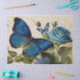 Beautiful large blue butterfly and smaller butterfly with a blue rose and other small blue flowers with cursive handwriting ephemera in the background. Perfect for furniture decoupage, arts, crafts, junk journalling, scrapbooking and more.