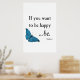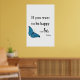 Vintage Blue Butterfly and Tolstoy Happiness Quote Poster
