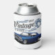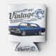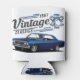 This is a rendering of a blue 1967 American classic muscle car with vintage style graphics in the background for a retro look.