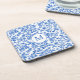 This coaster features an elegant, timeless floral design rendered in rich shades of blue against a soft, light background. Delicate botanical elements—blossoms, leaves, and winding stems—flow organically across the surface, creating a balanced composition. The artwork has a hand-illustrated, slightly textured look reminiscent of vintage toile or traditional botanical prints. Varying tones of blue add depth and dimension, giving the pattern a layered, almost painterly feel. Overall, it evokes a classic, refined aesthetic—a perfect blend of vintage charm and fresh, airy sophistication.