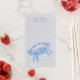 A vintage blue crab illustration is displayed on a guest paper towel napkin in silver or another colour of your choosing. Add your personal or business information, or remove the text. A fantastic design for your family reunion, crab boil, quiet coastal summer days / Also great at your sea food restaurant or for a wedding with a nautical motif. Click on the alma's design logo below to view our other crab, nautical, and vintage-themed merchandise. It comes per set of 50 napkins .