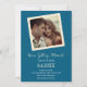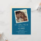 Retro sea blue and cream colored old-fashioned photo template wedding invitation with a boho vintage vibe. On the back you can add your own scanner code and RSVP info.