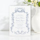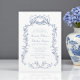 Celebrate your union with this exquisite wedding invitation, inspired by the beauty of vintage blue floral arches. The design features a picturesque scene with a charming bridge and serene swans, framed by a delicate floral garland. This invitation captures the essence of classic romance, making it ideal for a wedding with a timeless and elegant theme. Share your love story with this beautifully illustrated announcement that promises a celebration filled with grace and beauty.