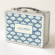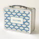 Vintage Blue Floral Pattern Name Metal Lunch Box