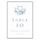 Vintage Blue Floral Swans Wedding Table Number. Personalize with your names and wedding date.