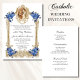 This is a beautiful Traditional Catholic Elegant Vintage Wedding Invitation of the betrothal of the Virgin Mary & St. Joseph with vintage gold frame and blue floral accents. Another lovely gold frame surrounds the text. All text may be easily customised.