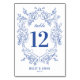 Vintage Blue Floral Wedding Table Number