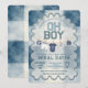 Celebrate your little MVP in style with this vintage blue football “Oh Boy” baby shower invitation! Featuring classic varsity typography, a charming baby clothesline with football details, and a soft dusty blue palette, this sporty design is perfect for welcoming a baby boy.