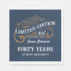 Celebrate his milestone birthday with our Vintage Blue Gold Men's Whiskey 40th Birthday design. The ornate blue and gold details add a classic touch, perfect for any whiskey enthusiast. Simple and stylish, this design is sure to please the man on his 40th birthday party.