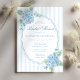 Vintage Blue Hydrangea Flower Stripe Bridal Shower Invitation