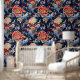Vintage blue red chinoiserie Wallpaper.