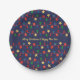 levate your holiday table with these stunning paper plates featuring a classic design of vintage Christmas ornaments and red beaded garland set against a rich, dark blue background. The deep blue offers a beautiful, luxurious contrast to the bright red, gold, green, and yellow baubles, creating a festive and elegant look for any event.