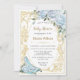 Vintage Blue Roses Gold Princess Baby Shower Invitation