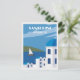 Anyone would love to receive this vintage Greek travel postcard featuring an illustration of a blue architecture church dome in Santorini, Greece!
