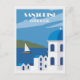 Vintage Blue Santorini Greece Greek Travel Postcard