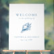 Vintage Blue Seashell Beach Wedding Welcome Acrylic Sign - personalise with your names and wedding date