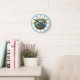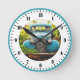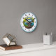 The clock did not take as long to arrive as I thought it might and was extremely well packaged. I didn't do the measurements so I didn't realize it is a little smaller than the average clock but that does not matter (just make sure you check if that's important to you).It is really nifty! It seems very solid and well made not flimsy at all. It has been going well and has kept good time in its few weeks on my wall. Nice product. Gets noticed too! Nicer in real life than the picture but true to the picture